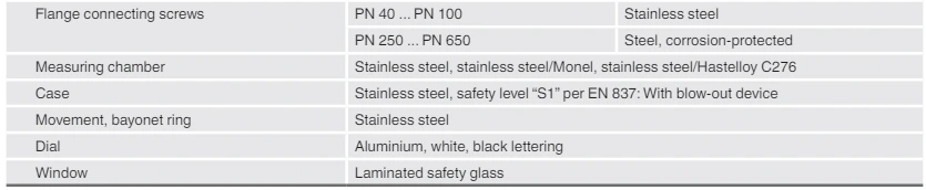 ■ 움직임은 편향을 포인터 회전으로 변환합니다. 과부하 안전 다이어프램 요소를 위한 금속 시트가 있는 하중 테이크업 지점을 통해 기기는 PN 40 ... PN 650(40 ... 650 bar [580 ... 9,425 psi] 압력 등급의 극도로 높은 작동 압력을 견딜 수 있습니다. ).